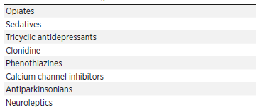 The pharmacological theory considers that neurotropic drugs with anticholinergic effects and colonic toxic drugs can lead to Ogilvie syndrome, with the most important listed in Table 1.