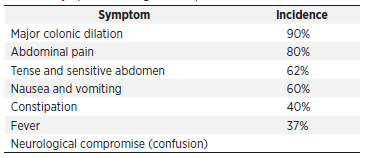 Clinical presentation of Ogilvie syndrome