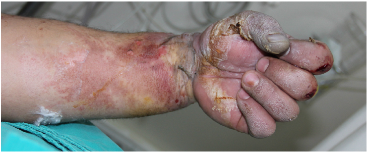 KEY WORDS: Burn trauma, Complications of high-voltage electrical burn injuries, Fasciotomy, Prevention of burn, Treatment of high-voltage electrical burn injuries