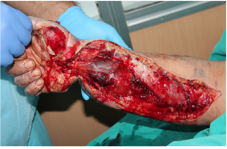 Figure 6.Fasciotomy in Arm Due to Compartment Syndrome After Electrical Burn Injury