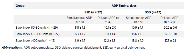Table 3.Average Timing of Immediate and Delayed Autodermoplasty After Trauma in Older Burn Patients (Aged >60 Years)