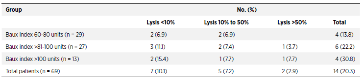Two patients (2.9% of all lysis cases) had total and subtotal graft lysis rejection. Partial rejection (up to 50%) of the transplanted autologous skin was more frequent and observed in 12 patients (17.3% of all lysis cases).